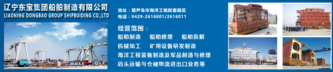 Liaoning Dongbao Group Shipbuilding Co., Ltd. is located in the offshore engineering supporting park of Huludao City. It is adjacent to the shipbuilding industry in the south and 1.9 nautical miles from the main channel of Jinzhou Port in the east. The company covers an area of 1.23 million square meters, with a construction area of 160,000 square meters. It has a coastal area of 2.25 million square meters, a dock shoreline length of 2,000 meters, and a water depth of 8 meters. It can repair ships of 200,000 tons or less. 公司可承接各類船舶制造、維修、拆船;鋼質(zhì)漁船制造、維修;船用產(chǎn)品制作、加工等工程。 The company can undertake various types of ship manufacturing, maintenance, shipbreaking; steel fishing boat manufacturing, maintenance; marine product production, processing and other projects.