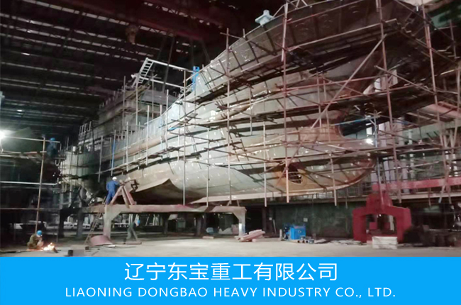 近日,由遼寧東寶重工有限公司承制的38.38米漁船順利下胎,2018-2019年東寶重工先后制造數(shù)十艘不同噸位漁船,制造能力達(dá)每年6-8萬噸。 Recently, the 38.38-meter fishing boat contracted by Liaoning Dongbao Heavy Industry Co., Ltd. successfully laid the tires. In 2018-2019, Dongbao Heavy Industries has successively manufactured dozens of different-tonnage fishing vessels with a manufacturing capacity of 60,000-80,000 tons per year. 遼寧東寶重工有限公司位于葫蘆島市北港經(jīng)濟(jì)開發(fā)區(qū),占地面積85000平方米,總建筑面積56651平方米,年生產(chǎn)能力66000噸,是一家集船體分段制作、船舶管件制作安裝、艙口蓋制作及鋼結(jié)構(gòu)工程制作的專業(yè)化公司,是渤船重工重要的船舶配套企業(yè)之一。在船舶船體分段、上層建筑、管件、和其他輔助機(jī)件制造安裝方面,具有豐富的經(jīng)驗(yàn)和雄厚的技術(shù)力量。擁有2000平方米鋼料堆場一座,小組力建造廠房兩座,中大組力建造廠房3座。擁有150噸起重機(jī)2臺,100噸起重機(jī)3臺。20噸起重機(jī)10臺等大型設(shè)備,最大起重能力300噸,年生產(chǎn)能力8萬噸。 Liaoning Dongbao Heavy Industry Co., Ltd. is located in the Beigang Economic Development Zone of Huludao City. It covers an area of 85,000 square meters, with a total construction area of 56,651 square meters and an annual production capacity of 66,000 tons. It is a hull segment production, ship fittings installation and hatch. The specialized company of cap making and steel structure engineering is one of the important ship supporting enterprises of Barge Heavy Industry. It has rich experience and strong technical force in the manufacture and installation of ship hull sections, superstructures, pipe fittings and other auxiliary parts. It has a steel storage yard of 2,000 square meters, the group has built two workshops, and the Zhongda Group has built three workshops. It has 2 sets of 150 tons of cranes and 3 sets of 100 tons of cranes. 10 sets of 20 tons of cranes and other large equipment, the maximum lifting capacity of 300 tons, the annual production capacity of 80,000 tons.