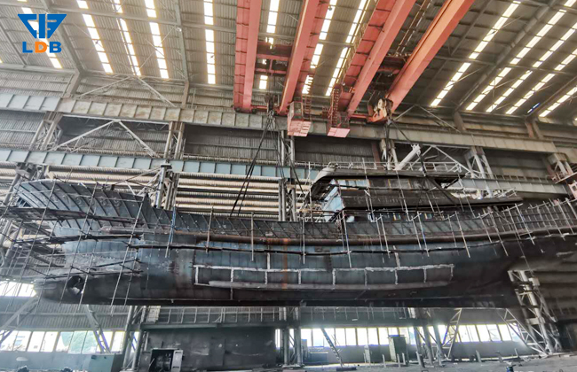 2020年7月末,在遼寧東寶重工有限公司生產(chǎn)車(chē)間內(nèi),又一條38.88米漁船順利完成下胎任務(wù),并轉(zhuǎn)入下到工序進(jìn)行生產(chǎn)。該漁船是我公司承接多條漁船的其中一艘,我公司近年來(lái)承接了多個(gè)種類(lèi)漁船的建造工程。船東對(duì)漁船質(zhì)量、生產(chǎn)建造工期及日后使用,都表達(dá)出滿意的態(tài)度。并繼續(xù)和我公司簽訂業(yè)務(wù)合作合同。 In July 2020 . In the workshop of Liaoning Dongbao Heavy Industry Co., LTD., another 38.88-meter fishing boat successfully completed the downwheel task and transferred to the down-to-down process for production. This fishing boat is one of many fishing boats undertaken by our company. In recent years, our company has undertaken construction projects of many kinds of fishing boats. Shipowners expressed their satisfaction with the quality, construction period and future use of the vessel. And continue to sign business cooperation contracts with our company.
