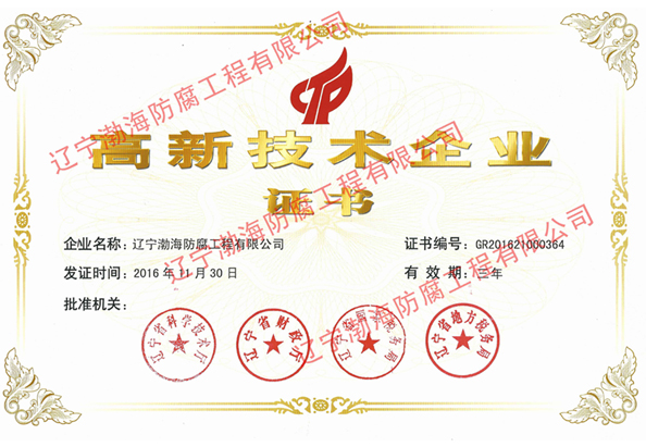 遼寧渤海防腐工程有限公司《高新技術(shù)企業(yè)》證書